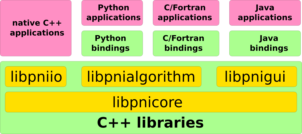 Fig. 1 The PNI library stack is a collection of C++ libraries developed with the intention to simplify the process of writing application in the PNI field. libpnicore , the library described in this manual is the foundation of this stack. It provides all the basic data structures and facilities used by all other libraries.